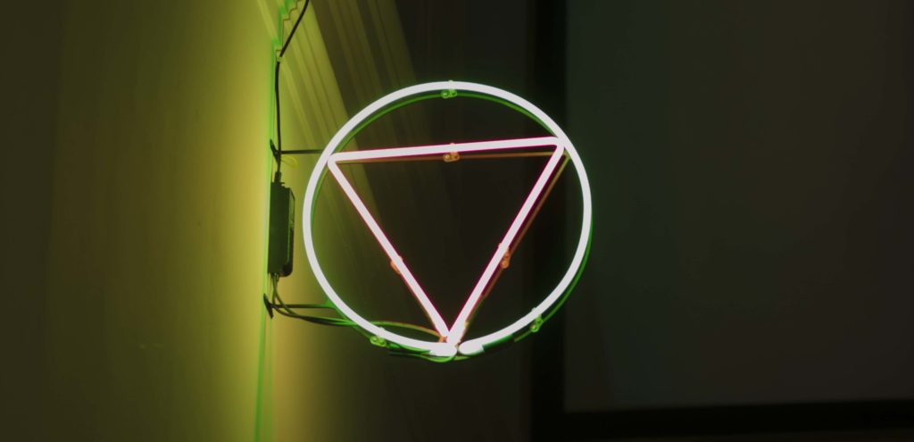 Neon – różowy trójkąt wpisany w zielone koło – jest znakiem bezpiecznej queerowo-feministycznej przestrzeni. Różowy trójkąt był symbolem używanym przez nazistów, aby oznaczać osoby homoseksualne w obozach koncentracyjnych, a w latach 80. został przejęty przez ruch ACT UP jako znak queerowego oporu, solidarności i aktywizmu w reakcji na pandemię AIDS. Zielone koło wskazuje na przecinanie się i tworzenie sojuszy praktyk queerowych z ekofeministycznymi. Trójkąt i koło to także oznaczenia podziału na męskie i żeńskie toalety w Polsce.